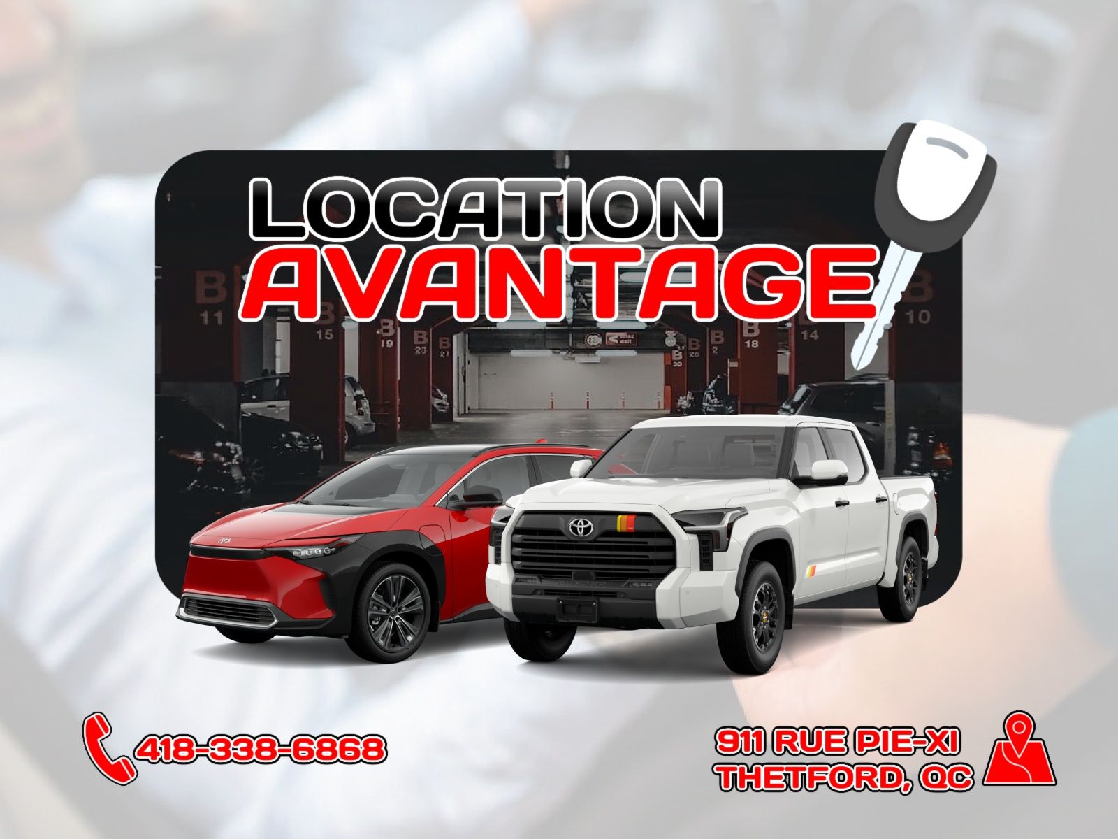 Pourquoi louer un véhicule chez-nous? Nous connaissons par cœur les véhicules que nous louons et nous sommes déjà des ambassadeurs de la marque Toyota! En effet, Location Avantage est situé chez Du Beau Toyota Thetford Mines, au 911 Pie -XI. Étant situé dans un environnement proposant les produits Toyota, un seul essai vous convaincra de nous choisir!